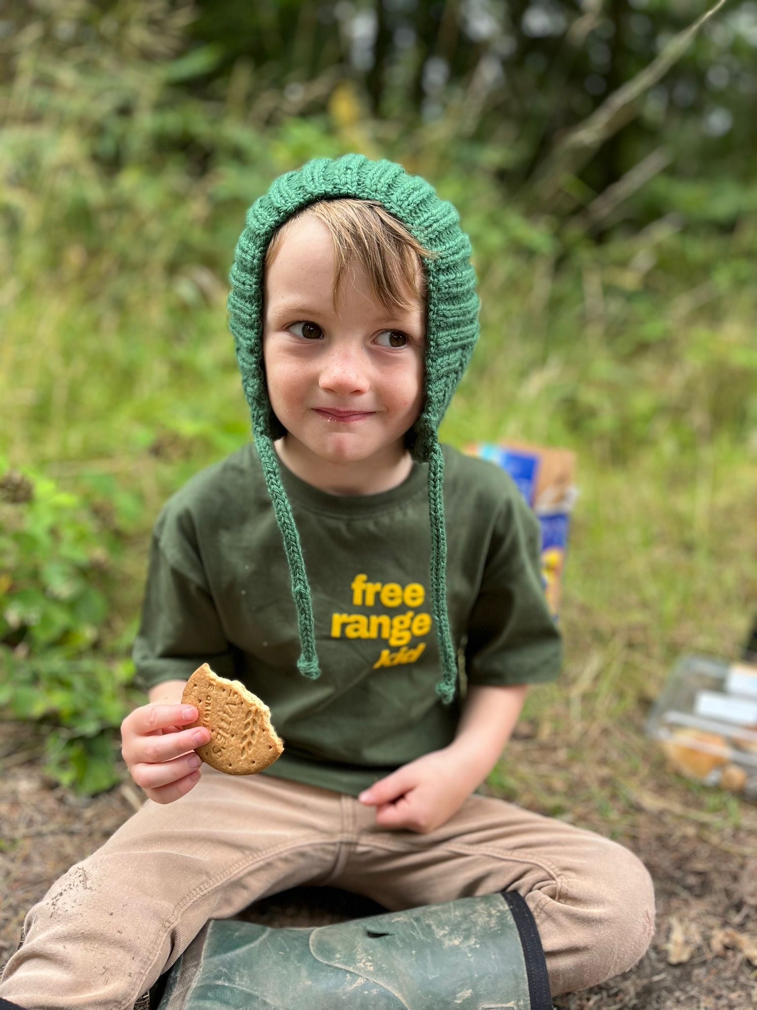 We wanted a super cute warm winter bonnet, to add to our Winter collection, it needed to be made from natural fibres, so we have choose the most beautiful sage Aran wool for our knitters to create this beautiful pixie bonnet.