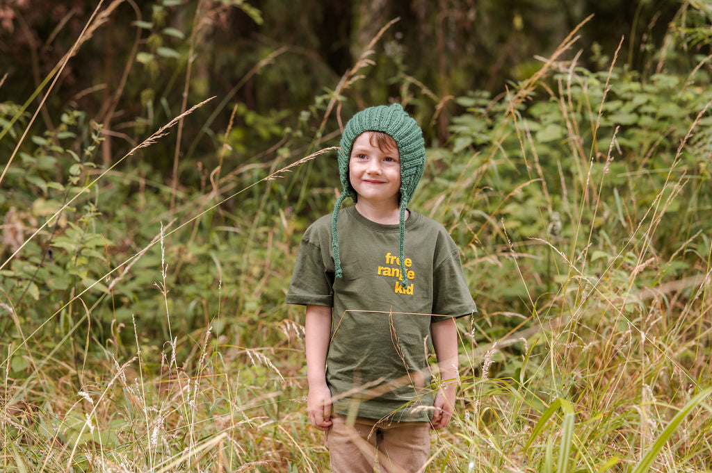 Green Children's Pixie wool hand knitted hat