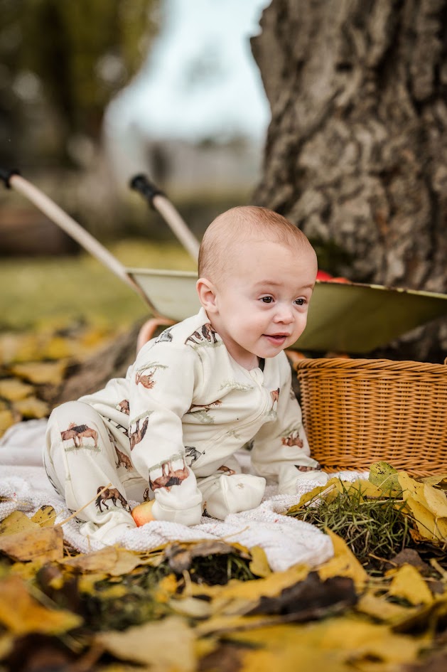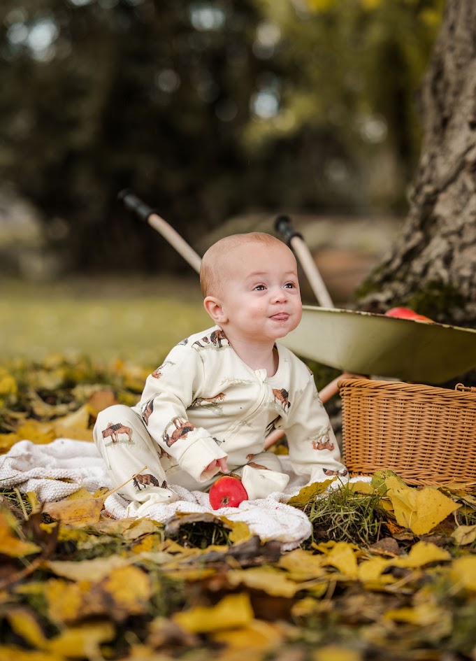 We have never really understood "boy" and "girl" baby clothes and after talking to you guys, we felt there was a real need for a truly unisex pony print, so no pink here, just beautiful ponies in their natural environment.